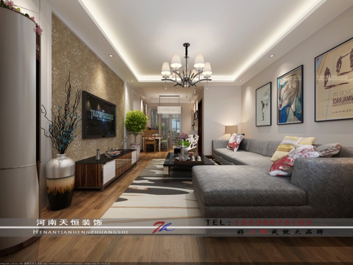 • 洛陽天恒裝飾工程有限公司裝修設(shè)計效果圖,小區(qū)案例為洛陽皇朝麗苑,戶型為三居室,局部展示為客廳,設(shè)計師是洛陽最好的家裝設(shè)計師陳陽,裝修風(fēng)格是簡約風(fēng)格。