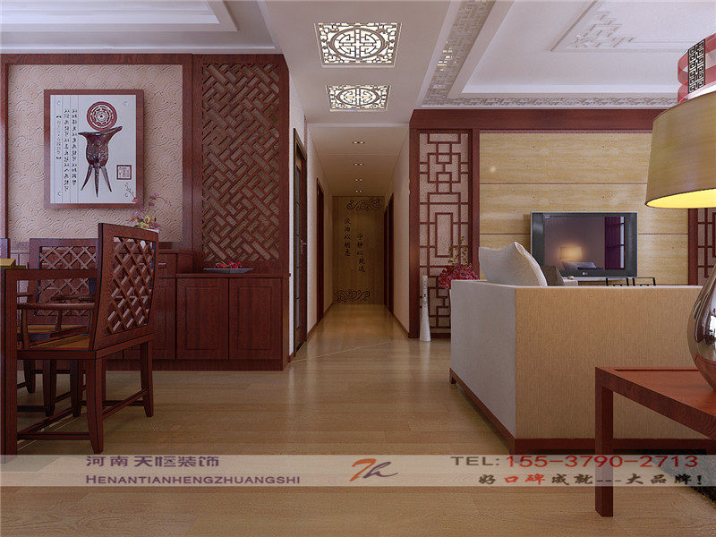 洛陽天恒裝飾工程有限公司裝修設計效果圖,小區(qū)案例為洛陽鼎城,戶型是三居室,設計師是洛陽最好的家裝設計師董姣,裝修風格為中式風格。