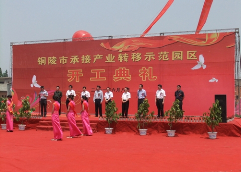 2011年6月8日上午陽(yáng)光和煦、微風(fēng)徐徐,東聯(lián)鄉(xiāng)永太路施工現(xiàn)場(chǎng)花團(tuán)錦簇,彩旗飄揚(yáng)。銅陵市承接產(chǎn)業(yè)轉(zhuǎn)移示范園區(qū)工程建設(shè)開工奠基儀式在這里隆重舉行。