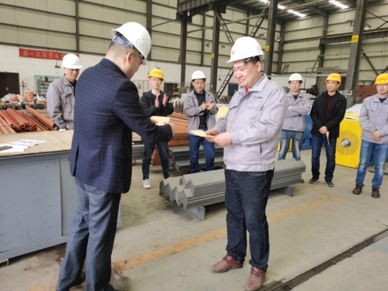 2021年4月2日中午12:15分,天奇藍(lán)天公司高管及先進班組和節(jié)約獎獲得者近30人在三號廠房“橫梁班”現(xiàn)場召開了一場別開生面的表彰大會。 首先,由公司總經(jīng)理章愛前對三月份在“先進班組”考核中優(yōu)勝的“許世艷班組”和“谷昆明班組”授予了先進班組流動紅旗和獎金,并對2020年受股份公司表彰的姚中華、翟宏維、滕軍波、李文四名標(biāo)兵頒發(fā)榮譽證書和獎金。章總還對在三月份節(jié)約材料專項工作中表現(xiàn)突出的周勇、李磊等六名同志頒發(fā)獎金。 我公司在今年伊始,面對原輔材料漲價和用工緊張的雙重壓力,積極應(yīng)對,著實圍繞生產(chǎn)成本練習(xí)內(nèi)功,號召廣大員工從節(jié)約“一度電”、“一滴水”、“一寸鐵”入手,自覺參與節(jié)約原材料活動,并及時做好該次活動的組織和評選工作。 此次我公司將先進表彰會的會場移到生產(chǎn)車間一線,就是要號召更多的員工投入到生產(chǎn)勞動競賽和節(jié)約原材料這兩項活動當(dāng)中去,積極弘揚主人翁精神和愛崗敬業(yè)的主旋律,為全面完成今年的生產(chǎn)經(jīng)營指標(biāo)而努力工作。 |