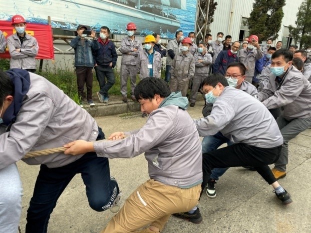 為豐富全體職工的精神文化生活,增強(qiáng)集團(tuán)公司凝聚力,公司于 2022年4月30日舉辦慶“五一〞拔河比賽。每支代表隊(duì)都顯示出最強(qiáng)的比賽陣容,齊心協(xié)力,勇?tīng)?zhēng)第一。 當(dāng)比賽的哨聲響起,隊(duì)員們口中一起高呼著“一二!一二”,雙手緊握長(zhǎng)繩,憋足了勁拼命往后拉,公司領(lǐng)導(dǎo)也在隊(duì)伍旁邊助陣加油,未參賽的員工自發(fā)組成啦啦隊(duì)為比賽隊(duì)員吶喊加油,號(hào)子聲、吶喊聲,此起彼伏,飄蕩在上空。