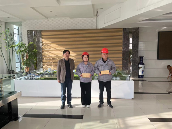 日前,財務(wù)部倉庫員工周陵元、賀慧玲在工作中堅(jiān)持原則、甘于奉獻(xiàn),較好地體現(xiàn)了員工的“主人翁”責(zé)任感以及“以廠為家”的精神,及時堵塞公司管理漏洞,摒棄不正之風(fēng)。經(jīng)公司決定:分別給予周陵元1000元人民幣、賀慧玲500元人民幣的現(xiàn)金獎勵。 2023年11月15日下午3時,公司總經(jīng)理張啟明向受到表彰的周陵元、賀慧玲給予現(xiàn)金獎勵,并與他們合影留念。 |
